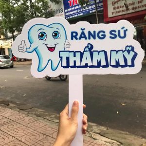 – Làm standee cầm tay bằng hình ảnh sản phẩm