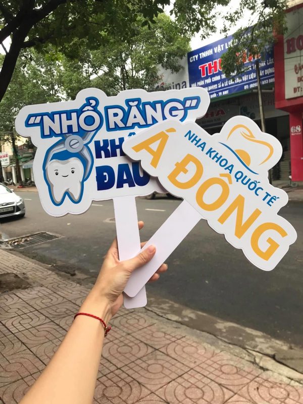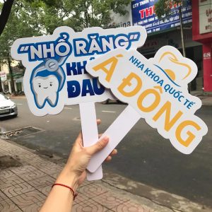Standee cầm tay thường được dùng trong những buổi tiệc party công ty. Hoặc là bất kì chương trình, even hay hội họp sinh nhật, tiệc cưới, khai chương…