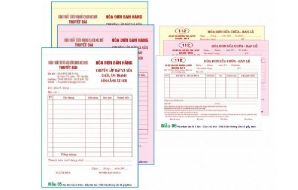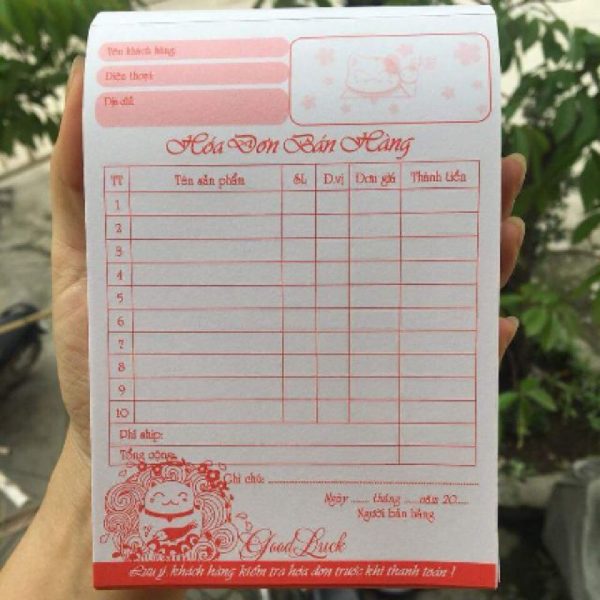 - Quy cách: Thường đóng quyển 100 tờ, keo gáy để dễ dàng xé rời đưa cho khách hàng.